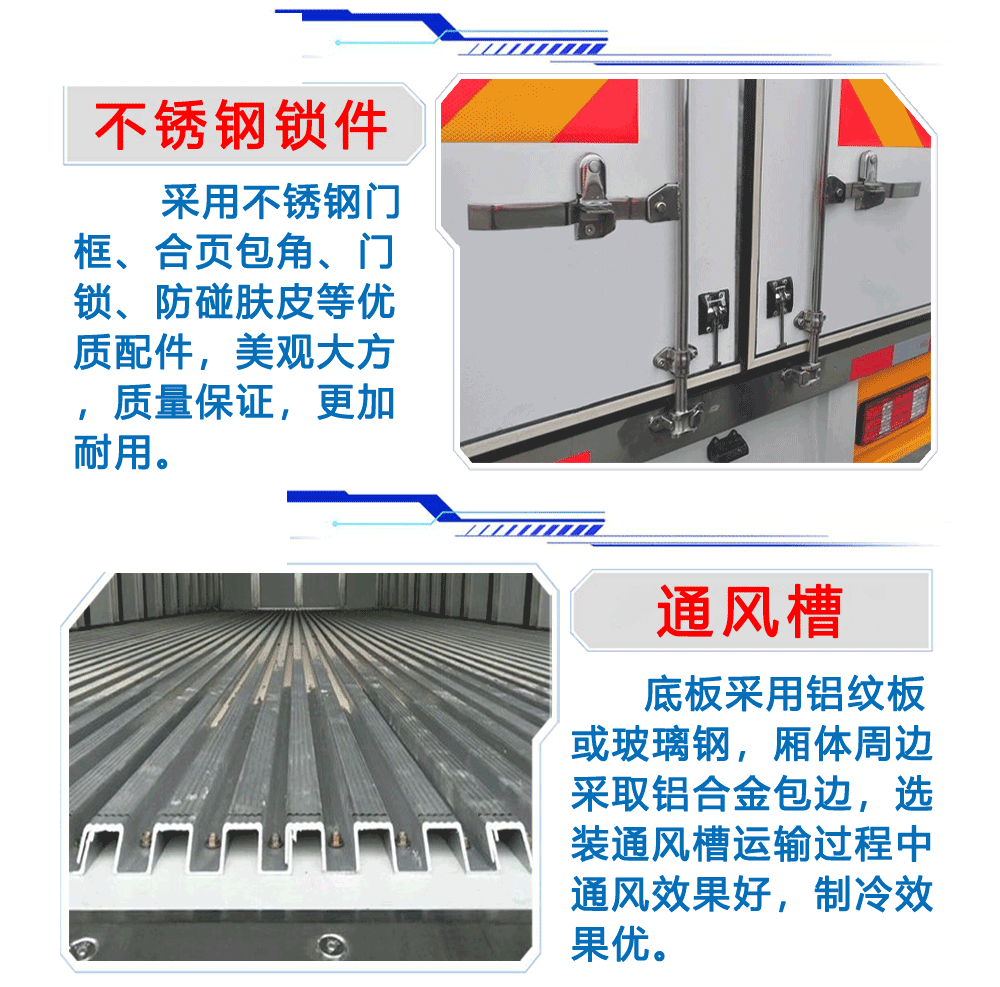 廂體配置:廂體板采用市面上最先進技術(shù)-負壓加熱抽真空技術(shù),保溫性能達到國家A級標準廂體。內(nèi)部尺寸為: 容積為 立方,廂體內(nèi)外面料采用最新款納米玻璃鋼(不吸光、隔熱性好、硬度強、抗氧化)廂體厚度為8cm ,內(nèi)襯骨架為防銹處理優(yōu)質(zhì)輕鋼型材鍍鋅管,保溫材料為無空隙填充聚氨酯發(fā)泡,廂體底部為鋁合金花紋板或選平面納米玻璃鋼,廂體采用鍍鋅不銹鋼包角,加厚型鋁合金包邊,后門框為不銹鋼,加厚型不銹鋼后門]合頁及鎖件,全車所有不銹鋼部位均使用食品級304不銹鋼制造,廂體內(nèi)部采用ED照明燈及廂體示寬燈。