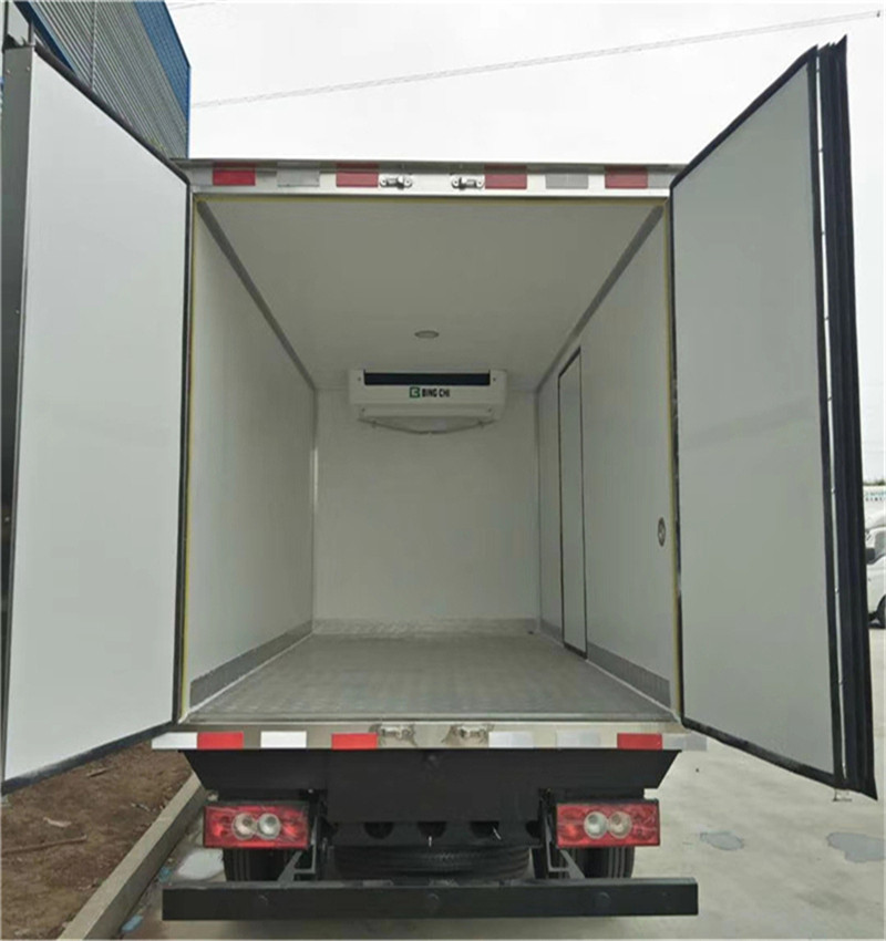 廂體工藝: 廂體材質(zhì)采用內(nèi)外玻璃鋼,中間8CM聚氨酯保溫板,后雙開門,廂體右側(cè)靠前選裝開側(cè)門,底部鋁花紋板,前部排水孔,門邊條采用迷宮式橡膠密封條,鋁合金型材包邊,不銹鋼包角,不銹鋼門鎖,不銹鋼門框及合頁,廂體內(nèi)節(jié)能LED照明燈。