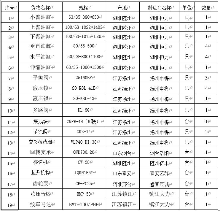 油缸 | 12只;帶雙向平衡閥或液壓鎖進(jìn)行鎖止,保證安全 | |||||||