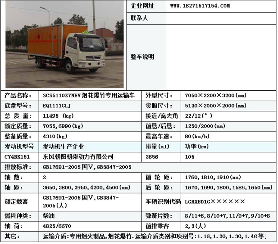 該車為一類煙花爆竹運輸車:可運輸包括煙花爆竹,煙火制品以及各種易爆危險品。